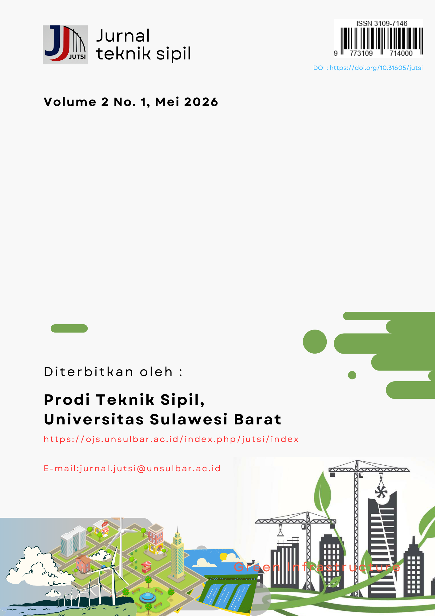 Jurnal Teknik Sipil (JUTSI) Universitas Sulawesi Barat membuka kesempatan bagi para peneliti, akademisi, dan praktisi untuk mengirimkan manuskrip artikel untuk diterbitkan pada edisi Mei 2026 (future Issues). Kami mengundang artikel-artikel orisinal di bidang teknik sipil.